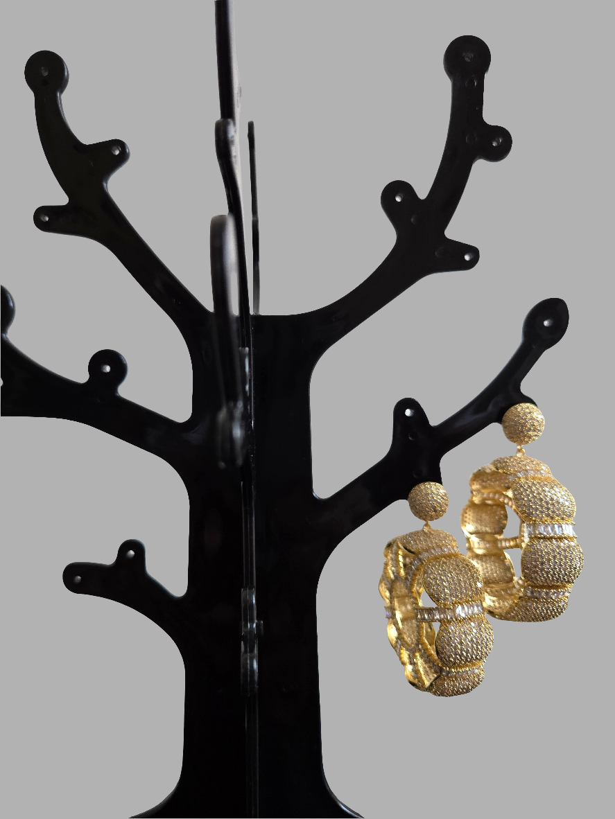 Shimmer with bold gold statement hoop earrings featuring a dome textured design. Perfect for weddings, parties, and standout everyday glamour.