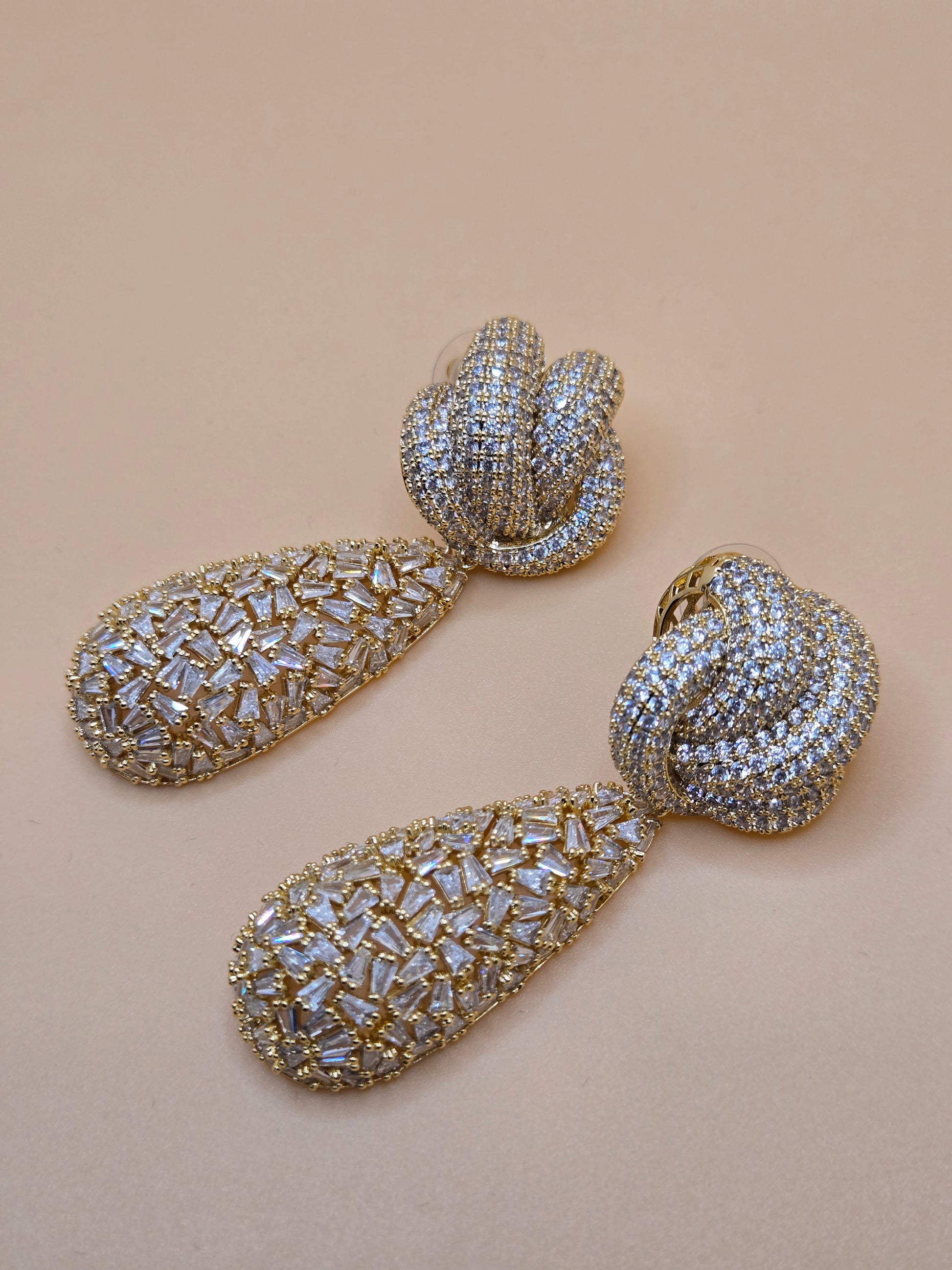 Brilliant Crystal Teardrops: Each earring features a teardrop-shaped drop adorned with pavé-set baguette and round-cut crystals for maximum sparkle.